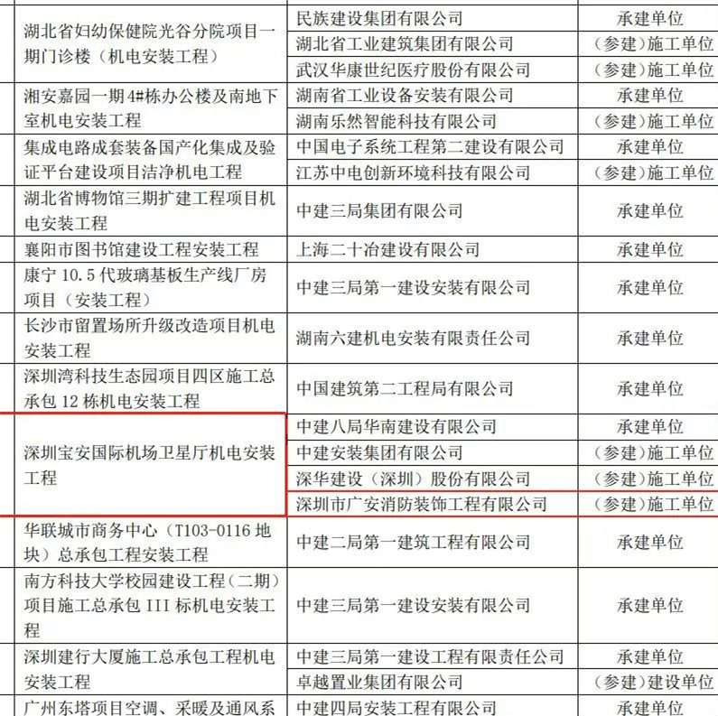 廣安消防:深圳寶安國際機場衛星廳機電項目榮獲中國安裝工程優質獎