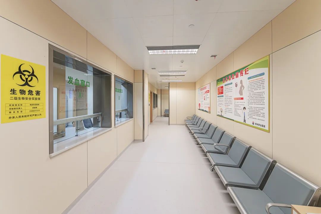 走廊采用HPL醫(yī)療板,該材料具有很好的可塑性、絕緣性和耐腐蝕性,具有更長的使用壽命,并且避免涂料、 噴漆、木膠合板墻紙等額外的材料與工序,有效減少甲醛等有害氣體的釋放。在色彩運用上,與大廳的木色色調(diào)相統(tǒng)一,讓整個診室走廊更加溫馨。