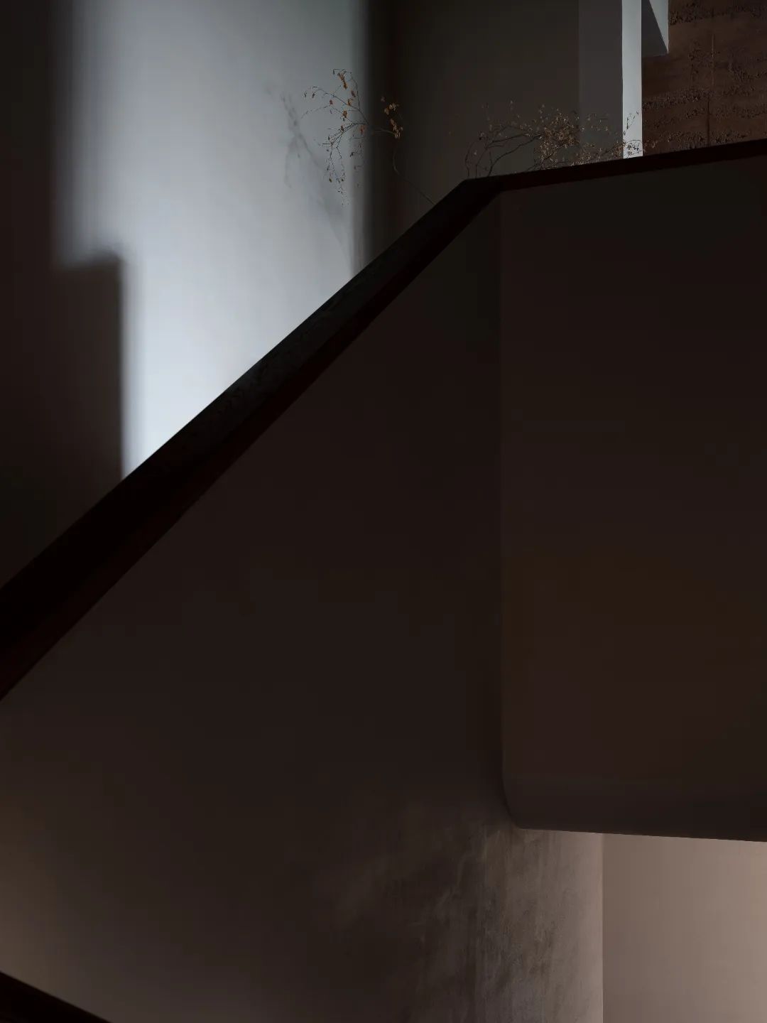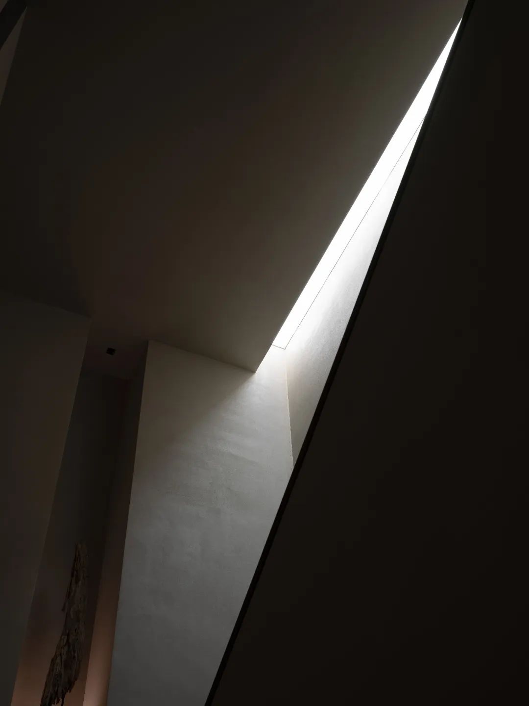 空間有時更像一座橋梁,建立起環境與人文的密切聯系。半入的微光將空間純粹化,此時的浮躁與喧囂好似無處遁形,與深邃而神秘的陰影相輔相成,構成凝練的幾何形式感。