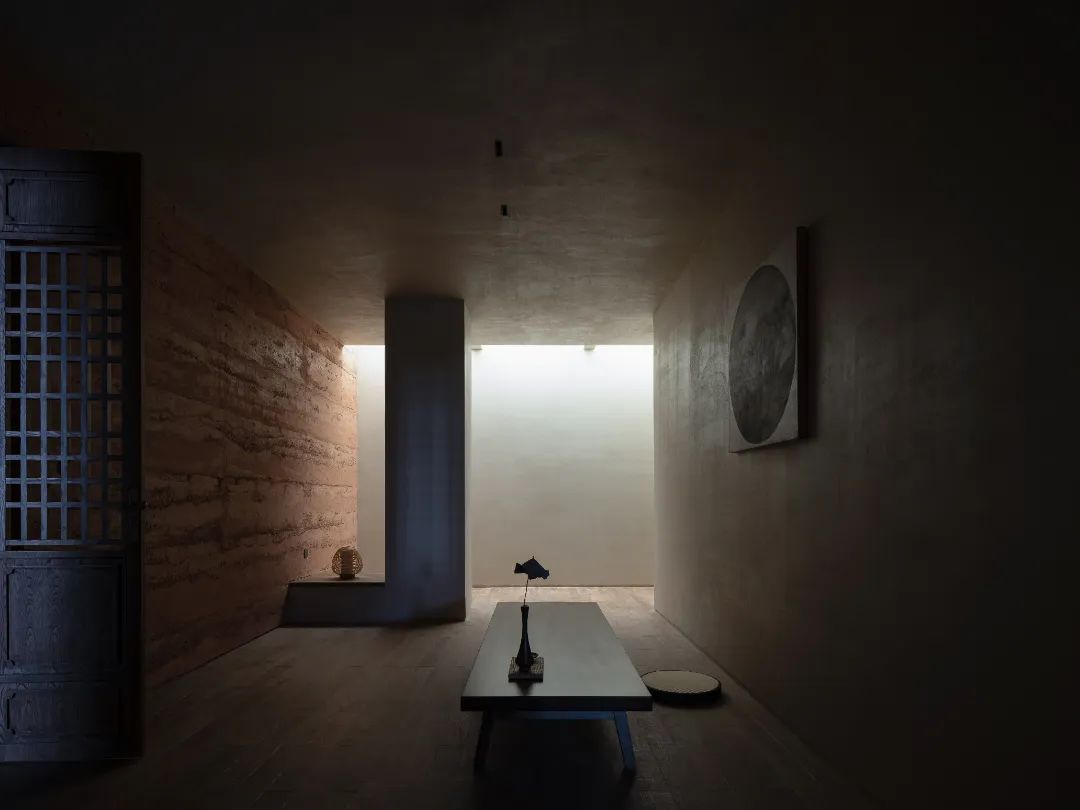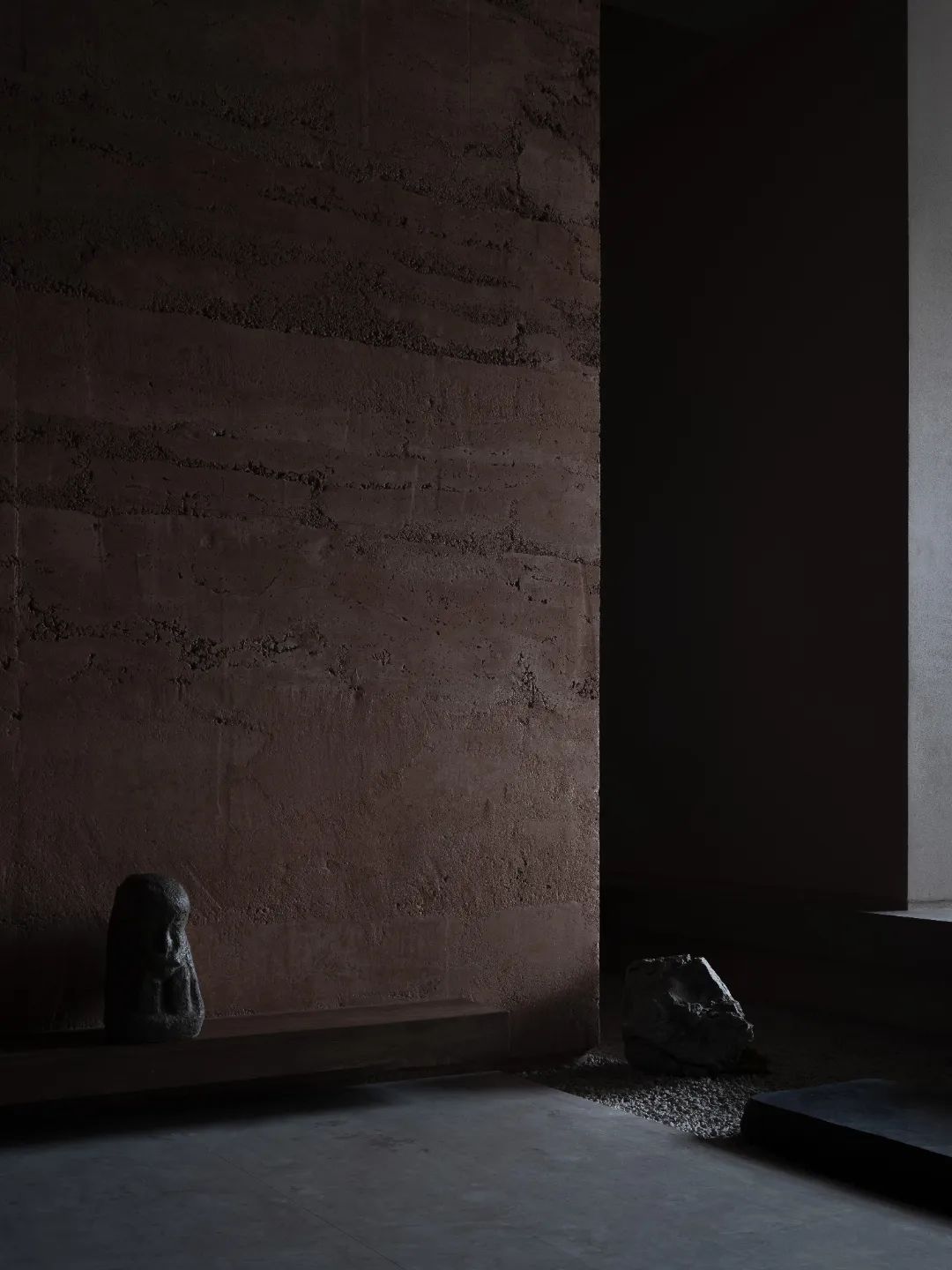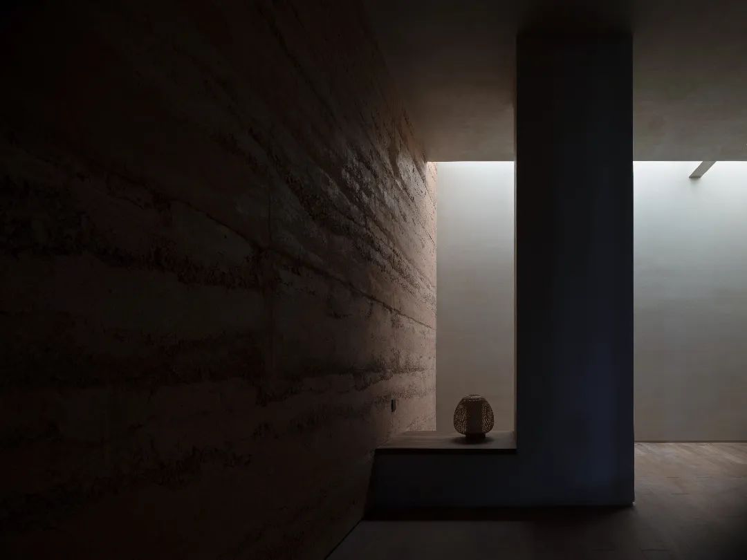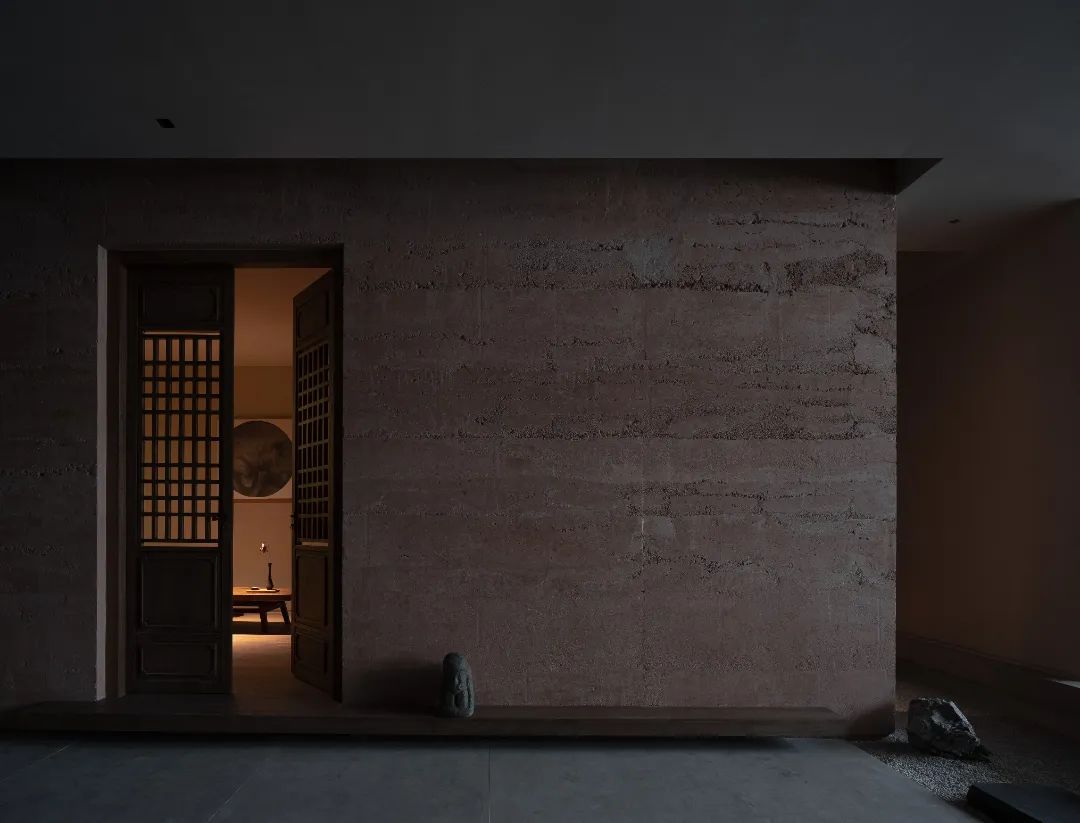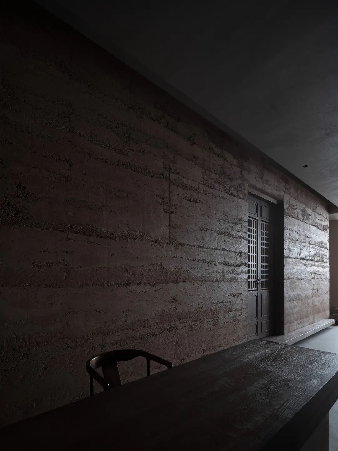 墻面夯土的自然紋理與大地的淳樸遙相呼應,充滿歲月和藝術美感,展現內斂超然,張弛有度的設計美學。