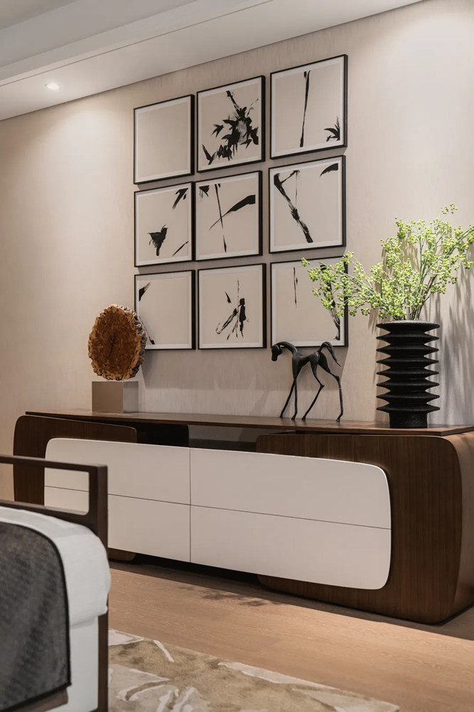 素雅的配色哲學與當代簡約的建筑體塊交匯,南京老城肌理與文化在其間交織延續,新與舊在此碰撞交融,既能獲得如沐春風的南京記憶,又能感知到文化的新生,營造多層次的舒適體驗。整個空間以洄游動線為主,以入戶玄關為核心,將衛生間,臥室,餐廚空間的動線串聯起來,為客戶提供了多種形式的動線安排,避免了單一選擇的不便性。