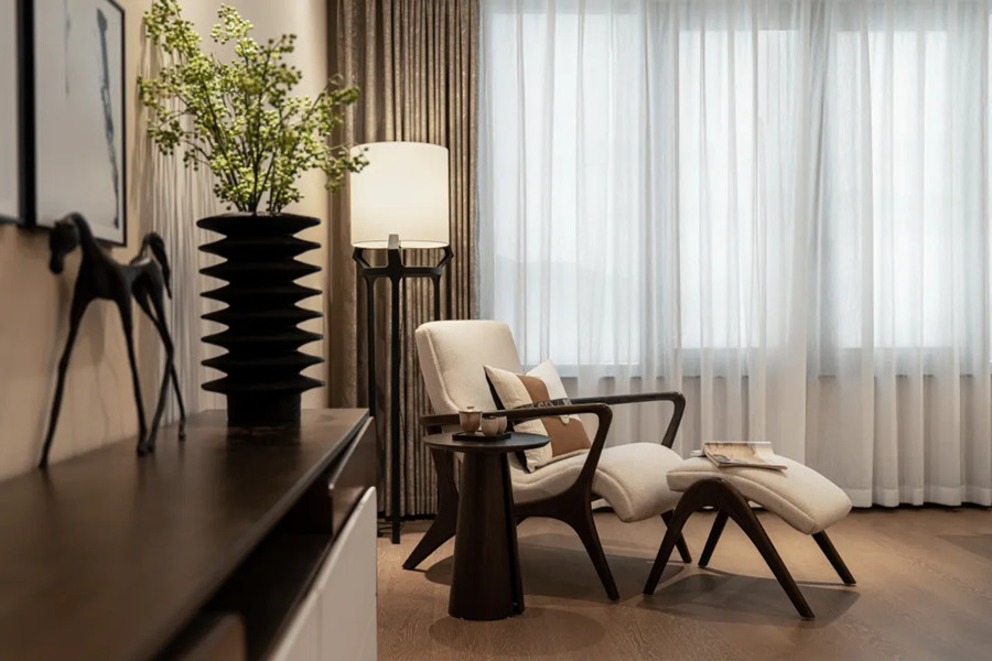 家具細節以適應長者的習慣進行設計,柔和的圓角保護老人不被直角磕碰,扶手加高,中軟坐墊不軟不硬,保護長者的身體健康,從細微入手打造適合老人身心的貼心之所。