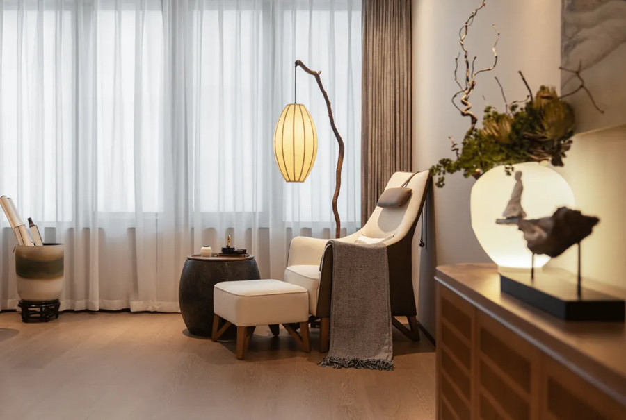 自然變老是尊重自然規律的一種形式,也是歲月沈淀后一種灑脫從容生活態度,在空間的設計中,設計師借勢自然打破人與自然的界限,用更為柔和舒緩的色調敘事,詮釋長者歷盡浮華之后精神的從容與平和,軟裝陳設取當地傳統文化及山水形態塑造情境,純粹本真的質感材料勾勒質量格調,共同營造出充盈悠然的老年生活。