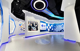 本案的概念設計就是將神秘、多樣且擁有極度包容性的海洋文化與云洲智能公司企業文化中的探索精神相結合。再用現代化設計語言、流線型工藝,打造出靈動且科技感十足的視覺體驗。首層大堂以流線藝術造型為視覺主調,在用色上大面積的優雅白中嵌著靜謐的海洋藍,氣勢恢宏且充滿張力的柱體,屹立在在大堂中央并貫穿了建筑的一二層,既延伸了原建筑設計的結構,也相得益彰的凸顯了室內設計的靈魂。