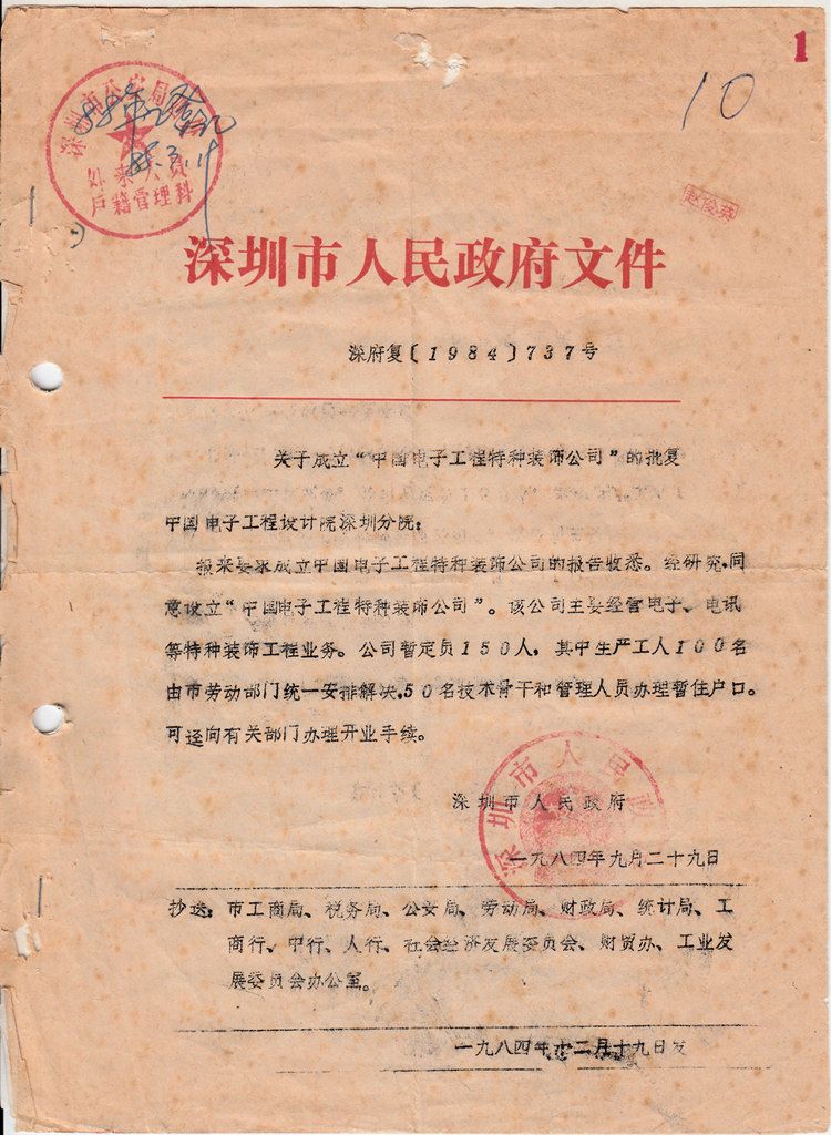小心翻開新科特裝破舊而泛黃的檔案袋,一張一九八四年八月二十二日深圳市工商行政管理局發(fā)放的營業(yè)執(zhí)照映入眼簾。