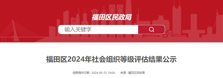 福田區2024年社會組織等級評估結果公示,協會獲評5A級社會組織。 ?