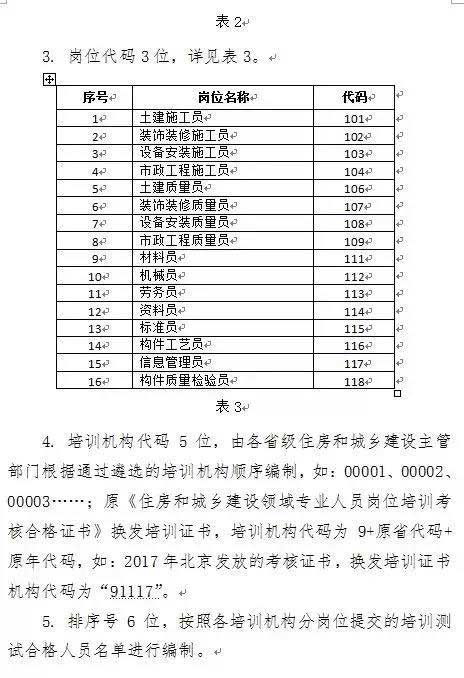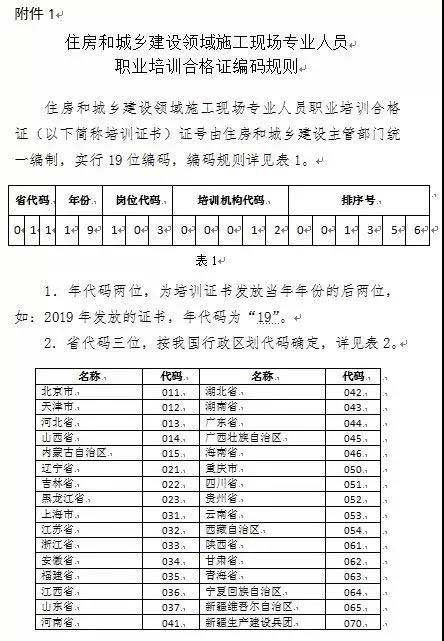 1.住房和城鄉建設領域施工現場專業人員職業培訓合格證編碼規則