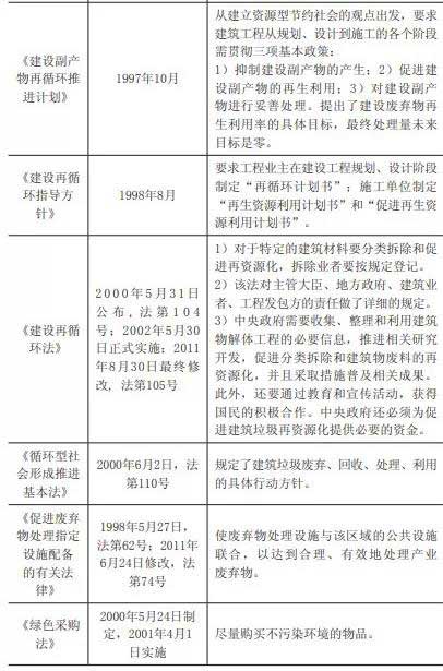 健全的法律體系。德國(guó)的建筑廢棄物管理法律體系由歐盟法—聯(lián)邦法—州法—市級(jí)法規(guī)構(gòu)成,均以倡導(dǎo)循環(huán)經(jīng)濟(jì)發(fā)展為立法模式,形成了較為完善的建筑廢棄物管理政策法律體系。