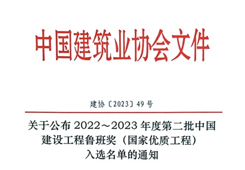 2022~2023年度第二批中國建設(shè)工程魯班獎(國家優(yōu)質(zhì)工程)入選名單公布。