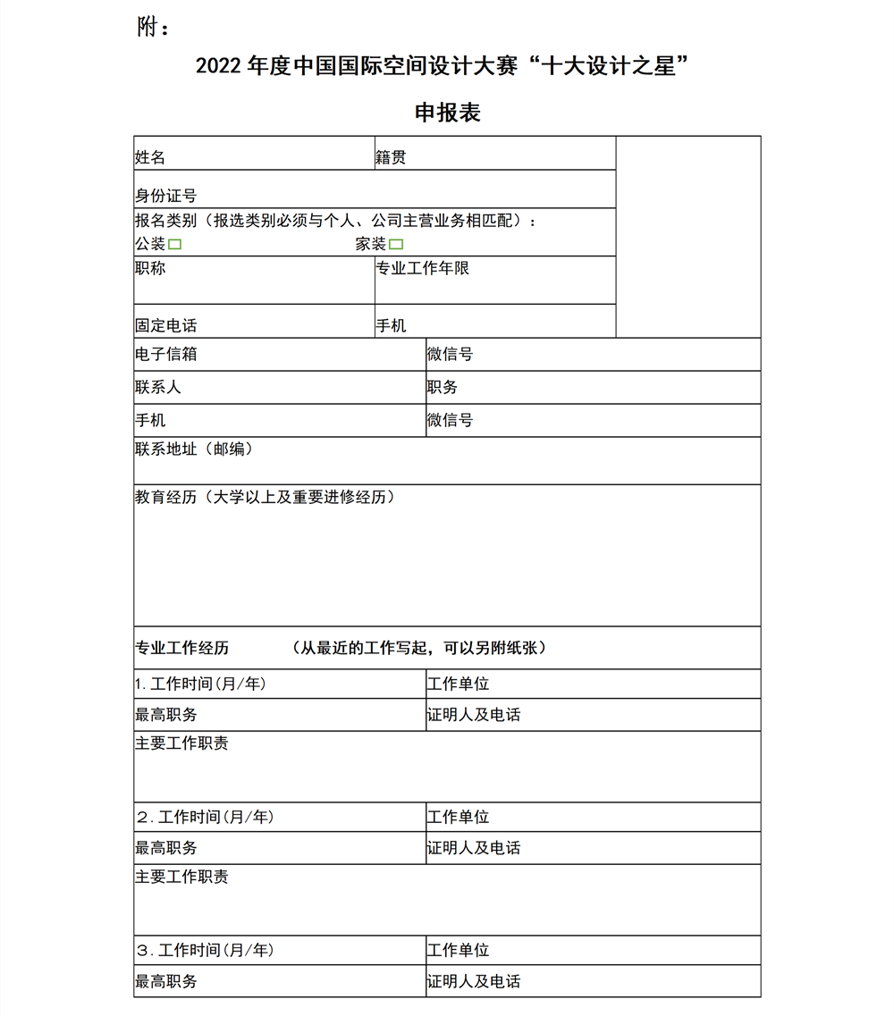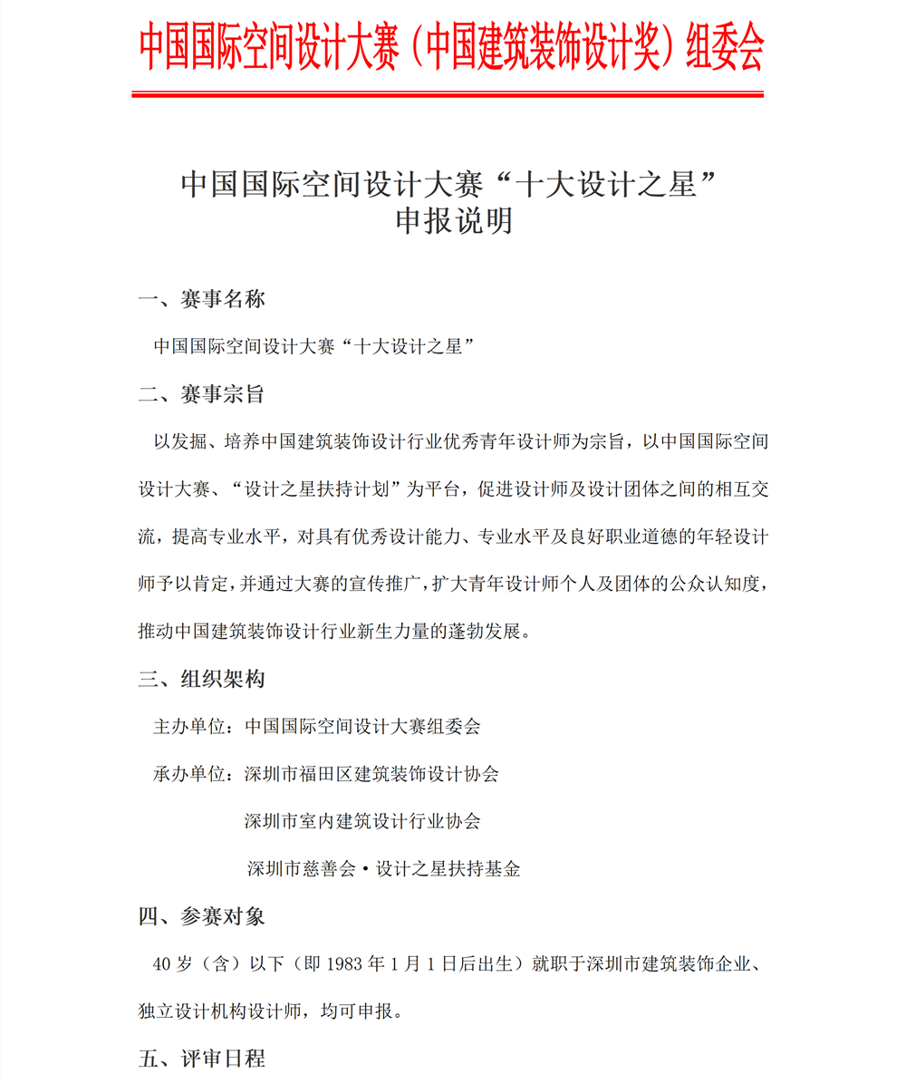 關(guān)于2022年度中國(guó)國(guó)際空間設(shè)計(jì)大賽“十大設(shè)計(jì)之星” 的申報(bào)說(shuō)明